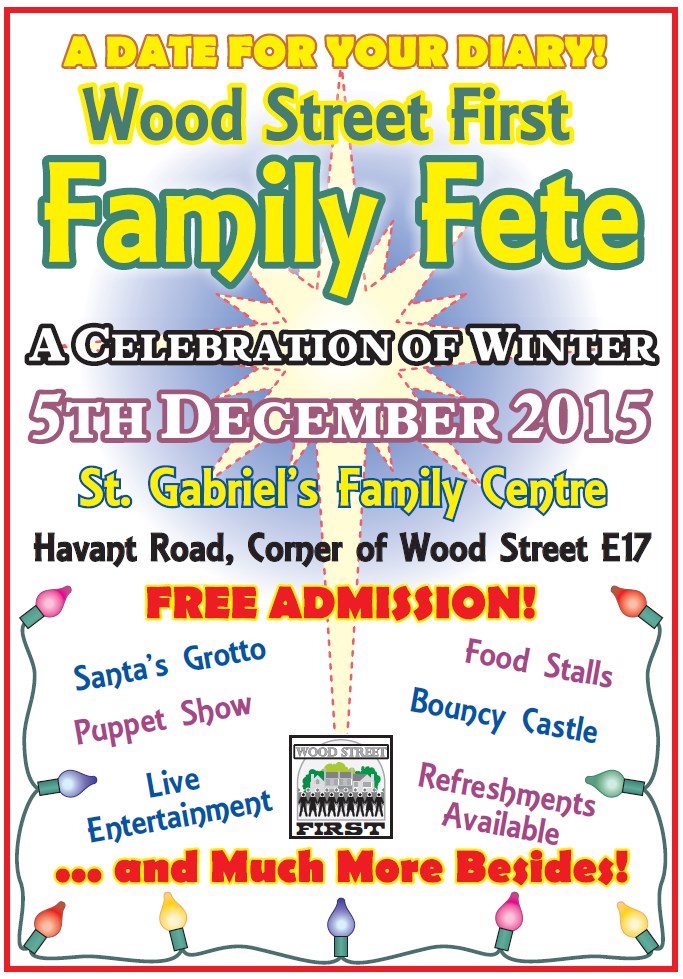 This quick post shares the date and venue of our next family fete, a celebration of winter. It will be on Saturday 5th December, and will take place in and around the St Gabriel’s Family Centre, Havant Road E17 (near the Wood Street end).
