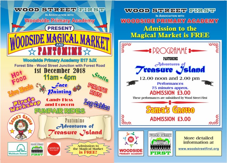 Just a quick reminder that there is an event on this coming Saturday, 1st December, at Woodside Primary Academy (Forest Rd Site) where Wood Street First will be hosting a Pantomime, Treasure Island.