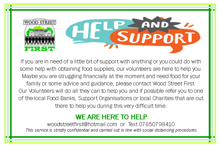 16 Apr 2020 by woodstwp Support for Wood Street Ward Residents During the pandemic, if you find you are struggling in any way Wood Street First may be able to help. 16.04.2020 Share this: Click to share on X (Opens in new window) X Click to share on Facebook (Opens in new window) Facebook Like Loading... Related