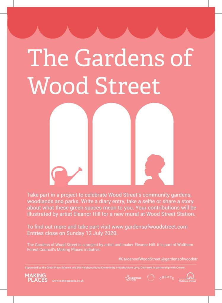 Take part in a project to celebrate Wood Street’s community gardens, woodlands and parks. You can write a diary entry, take a selfie or share a story about what these green spaces mean to you. Contributions will be illustrated by artist Eleanor Hill for a new mural at Wood Street Station.