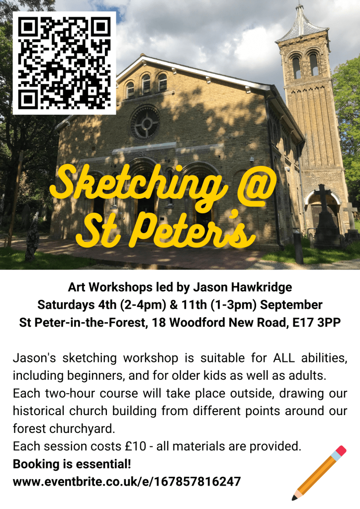 02 Sep 2121 by woodstwp Art Workshops at St Peter-in-the-Forest St Peter-in-the-Forest are holding 2 art workshops on the 4th & 11th September 21 . See details below: 02.09.21 Share this: Click to share on X (Opens in new window) X Click to share on Facebook (Opens in new window) Facebook Like Loading... Related