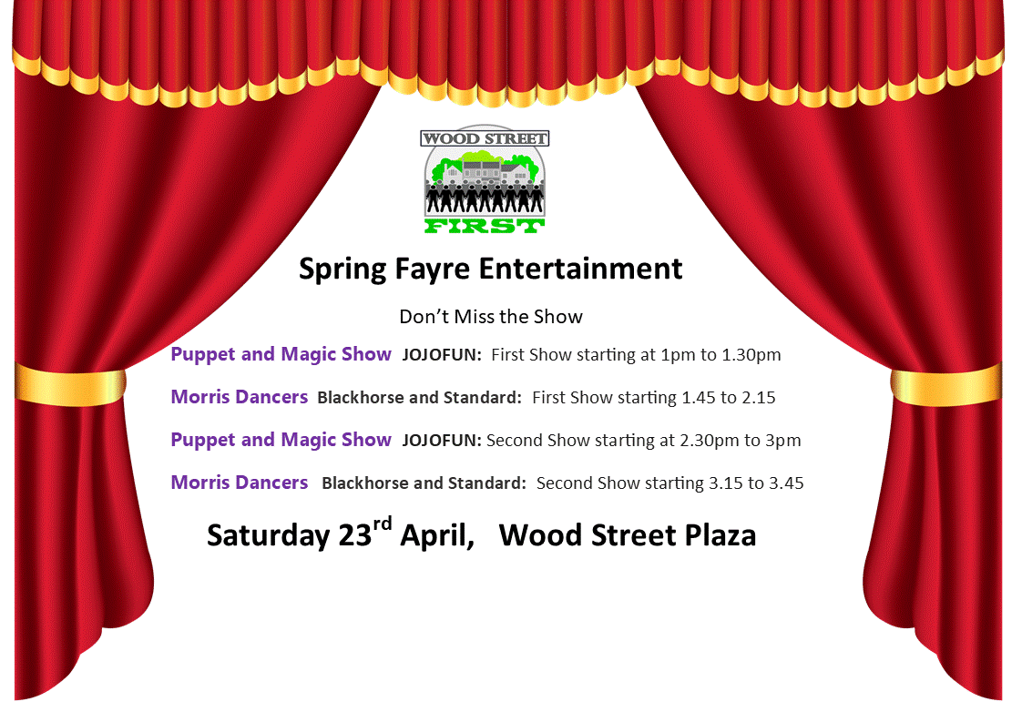 19 Apr 2222 by woodstwp Entertainment Line-up for 23rd April Event. Please see below the entertainment timetable for the event on 23rd April 22. Posted 19.04.2022 Share this: Click to share on X (Opens in new window) X Click to share on Facebook (Opens in new window) Facebook Like Loading... Related